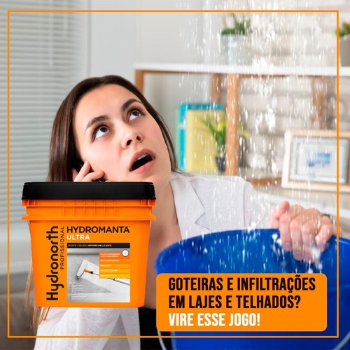 É uma manta líquida profissional de alta performance, formulada a partir de resinas acrílica modificada e elastomérica, especialmente criada para aplicação a frio, sem emendas e moldada no local, possui secagem rápida e altíssima resistência. O Impermeabilizante HYDROMANTA ULTRA HYDRONORTH é uma excelente alternativa para proteção e impermeabilização, resistente às intempéries, protege *contra raios solares e ainda reflete os mesmos reduzindo* a temperatura da estrutura, além de dispensar proteção mecânica para áreas com trânsito eventual de pessoas.Quando aplicado corretamente e curado, forma uma película elástica e flexível, impermeável de alto desempenho e elevada durabilidade que impede a absorção de água protegendo a superfície bem como, a própria edificação. Após a cura total e definitiva, pode ser aplicado revestimento cerâmico/proteção mecânica direto sobre o filme do produto dispensando novo contrapiso
